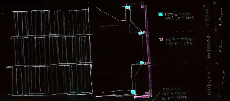 Cambiar la imagen de una esquina que pertenece a un paño de fachada urbano muy importante dentro de la trama estructurante de la ciudad de Chillán, que entregara una renovada imagen corporativa a esta empresa familiar, que no será definitiva en su concepción, que ayude en la bioclimatica del edificio, que sea rápida en su montaje y con un presupuesto acotado, todo esto se consigue mediante una sencilla trama de madera aserrada en distintas escuadrías, separadas en convenientes retablos prefabricados.